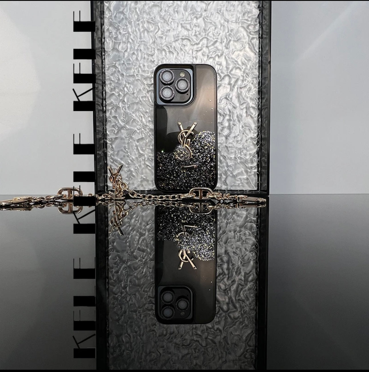In terms of appearance, it features a romantic and mysterious purple as the main tone. The delicate quicksand blends with shining sequins, as if the galaxy and universe are sealed inside. When you gently shake the phone, the quicksand flows like agile elves, and the sequins reflect light, staging a gorgeous light and shadow show. The iconic three-dimensional embossed metal logo is full of texture, making the phone case stand out in daily life or social occasions.It is made of high-quality flexible silica gel, which fits the phone body closely and provides all-round protection. With impact resistance, wear resistance and scratch resistance, it remains brand-new even after long-term use. The quicksand part consists of safe and harmless liquid and high-quality glitter, so there is no need to worry about liquid leakage or precipitation. The quicksand effect is stable, bringing long-lasting visual enjoyment.The design hides thoughtful details. The precise cutouts are adapted to the phone's buttons and interfaces, allowing smooth operations such as charging and adjusting the volume without frequent removal of the case. The matching gold chain is strong and durable. Hanging it on the wrist prevents the phone from falling, freeing your hands when shopping or traveling. Its simple style also complements the luxurious style of the case, enhancing the fashion sense of the phone. If you want to add unique charm to your phone while seeking high-quality protection, this is definitely a great choice.